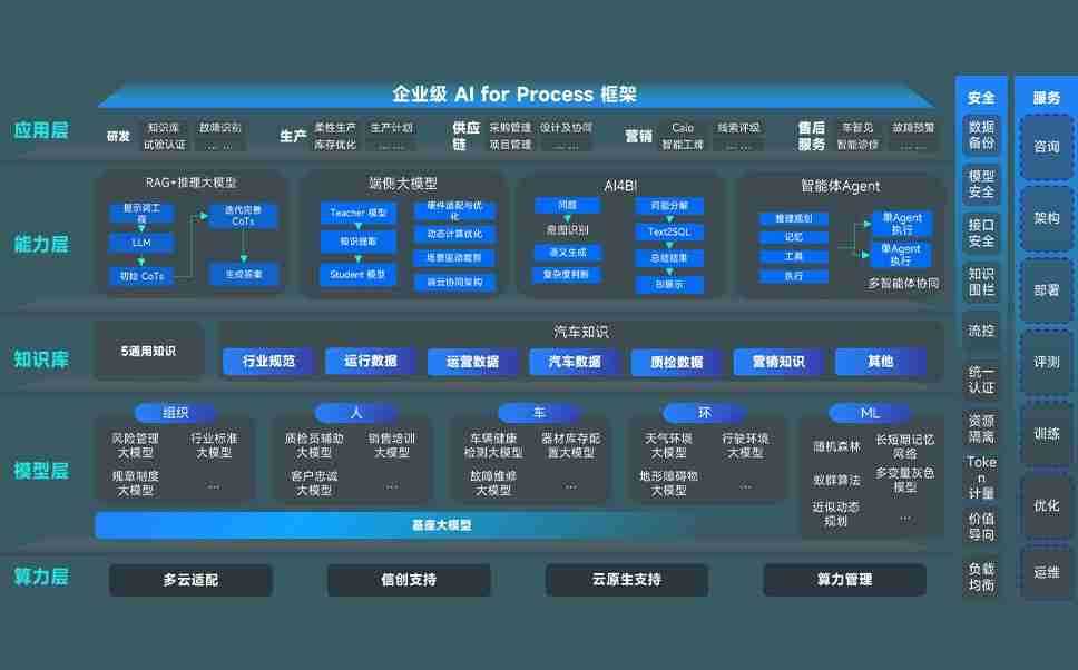 端到端的一站式AI工作空间深度融合了从企业战略规划到日常经营的全流程业务板块,,,,定向解决车企内部领域多、、、部门多、、、、链条长、、、、场景碎片化等难题,,,,支持车企快速构建以AI为核心的生产力写作体系,,实现任务执行与AI能力的无缝集成与交互