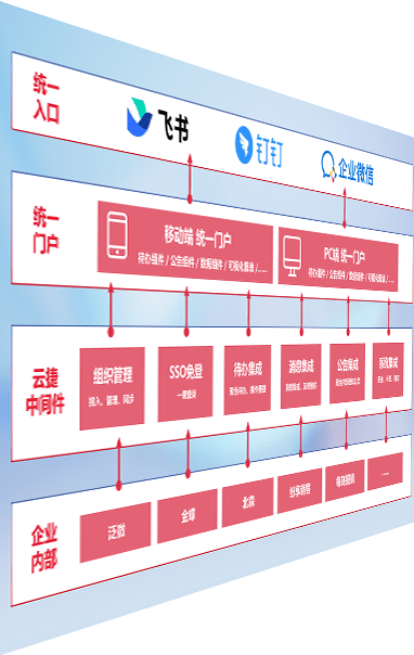 对协作平台提供支持服务,,,支持企业应用与协作平台对接,,包含组织同步、、消息集成、、、待办集成等。。支持目前主流的协作平台:钉钉、、、企微和飞书。。。